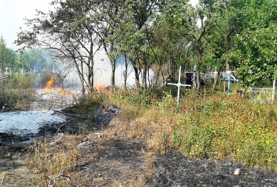 Завдяки професійним діям, бійці ДСНС за лічені хвилини приборкали вогняну стихію, а також запобігли поширенню вогню на хрести та меморіальні надгробки кладовища.