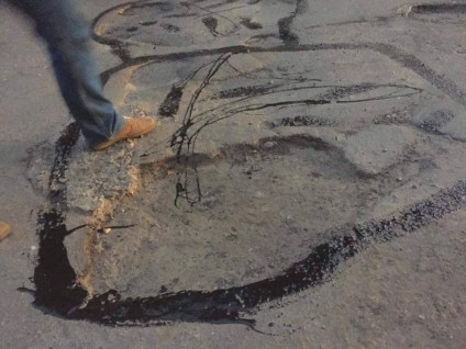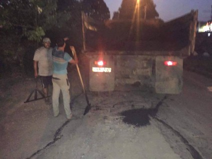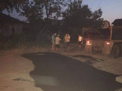 На відрізку від вулиці Котовського у бік обласної лікарні бригада робітників укладає асфальт. Втім довідатися, на чиє замовлення та за чиї кошти робиться тут ремонт, активістам не вдалося.