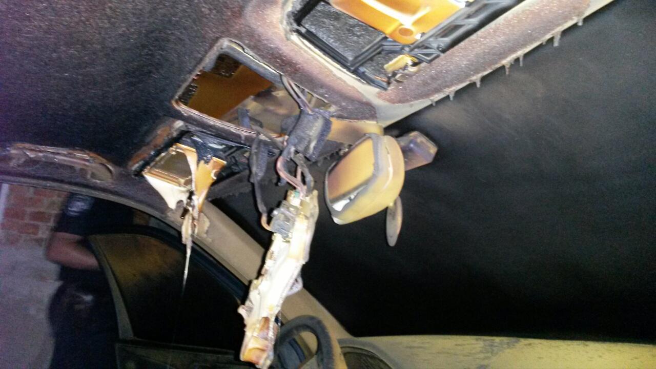 Спрацювала сигналізація, але поки я вибіг пройшло приблизно 10 хвилин. Коли я тушив автомобіль, то вийняв ту бутилу з рідиною. Вона вже на вулиці догоріла. Зараз автомобіль знаходиться у міліції. Її опломбували. В салоні вигорів пластик, шкіряне сидіння.