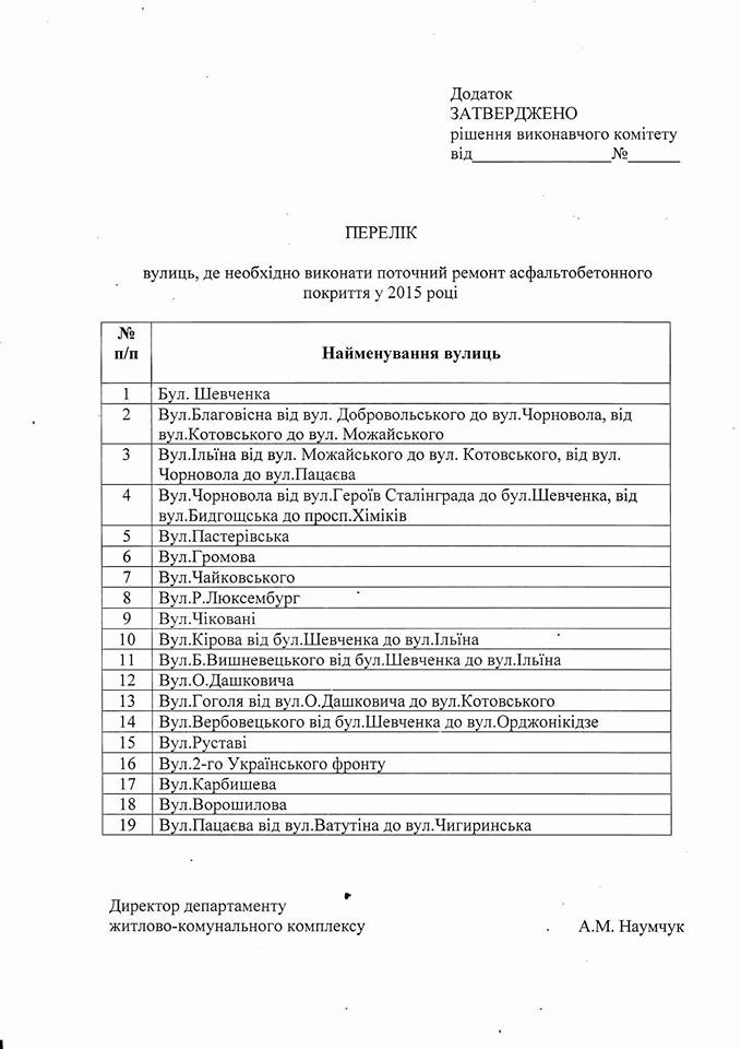 На сьогоднішньому виконкомі міської ради затвердили перелік вулиць, де буде відбуватись ремонт доріг. Про це повідомляє у «Фейсбуці» секретар Черкаської міської ради Олександр Радуцький.