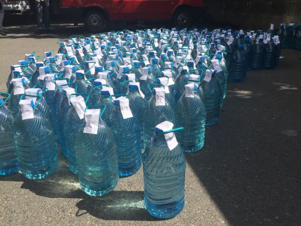 У домоволодінні правопорушниці оперативниками було виявлено 282 п'ятилітрові пластикові ємності, заповнених прозорою рідиною з характерним запахом спирту.