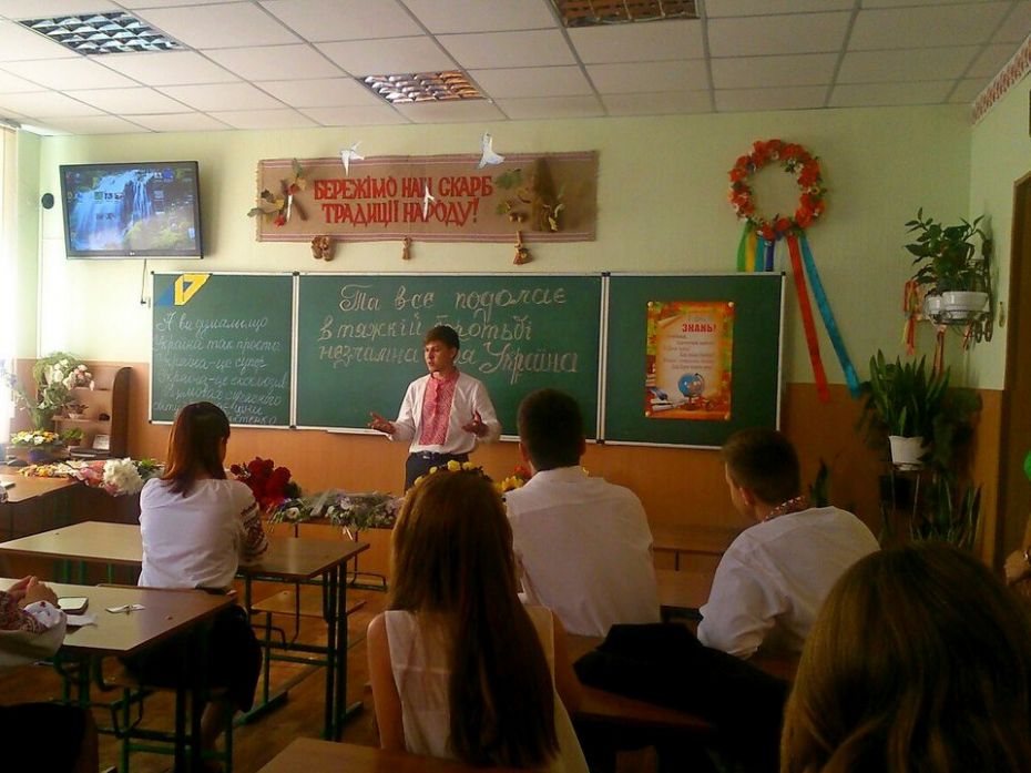 Тема уроку стосувалася єдности України. Під керівництвом вчительки Галини Миколаївни Шепіль школярі згадали історію боротьби українського народу за незалежність та панування на свої землі. Говорили і про теперішні часи, згадавши Небесну сотню та героїв російсько-української війни. Загиблих вшанували хвилиною мовчання.