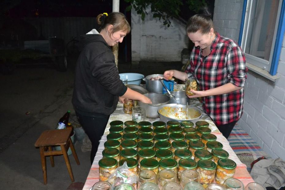 Невтомні волонтери-свободівці принесли томат, цибулю, моркву та закаточні кришки і все це разом із рибою перетворили на такі необхідні для фронту продукти харчування. Консерви планують передати для 43-ї артилерійської бригади, в який воює чорнобаївець, Тарас Кінаш, та свободівському батальйону ОП "СІЧ"