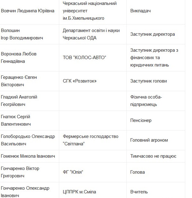 Черкаська обласна парторганізація ВО «Батьківщина» виносить на громадське обговорення список потенційних кандидатів до Черкаської обласної ради, інформує видання «Вчасно».