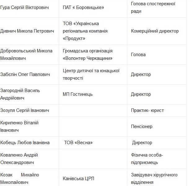 Охочі взяти участь в обговорені кандидатів можуть надсилати свої пропозиції на адресу: м. Черкаси, вул. Хрещатик, 225, оф. 25, на електронну адресу Ця електронна адреса захищена від спам-ботів, Вам потрібно включити JavaScript для перегляду , телефонувати за номером: 500-459.