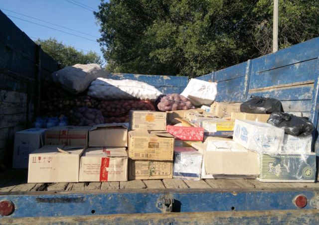 Збирали продукти, як кажуть, з усього Чорнобаївського району, зазначають у прес-службі ВО «Свобода». Допомогу передали небайдужі люди з 6-ти населених пунктів району. Зокрема, Володимир Печеряга зібрав у селах Мохнач та Велика Бурімка дуже багато різних овочів та консервації; заступник голови Чорнобаївської РДА В.В. Бреус домовився з підприємцями, які виділили 120 банок консервованої гречаної каші з м’ясом; також 124 банки тушкованої риби, яку тиждень тому волонтери-свободівці за підтримки підприємців законсервували; сільська рада села Ревбинці, в яку місцеві жителі зносили різні продукти харчування та засоби гігієни; церква села Ревбинці надала різні продукти харчування; Юрій Кулик передав сухі борщі та капучино в пакетиках; СТОВ ім. Щорса надало різні крупи, макарони, олію та м’ясо.