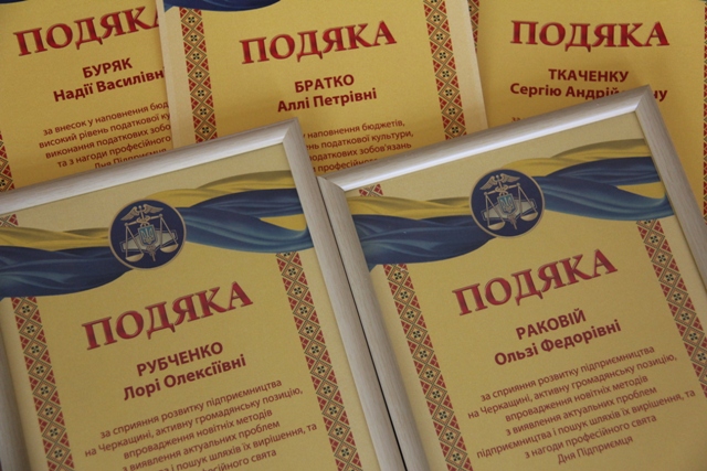 Напередодні професійного свята у головному управлінні ДФС у Черкаській області визначили кращих підприємців регіону і відмітили їх подяками.