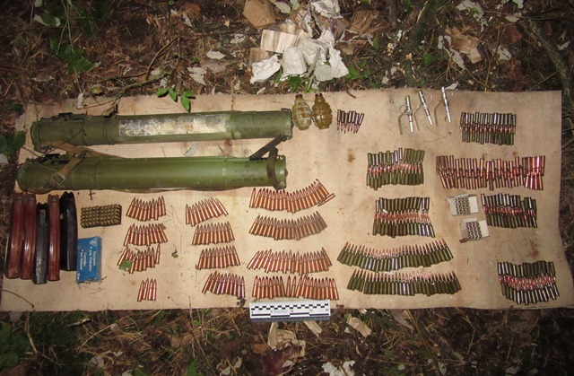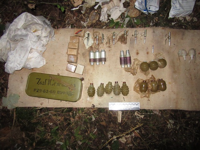 Арсенал був запакований у полімерну сумку та засипаний землею. Правоохоронці вилучили зі сховища два гранатомети РПГ-18, сім гранат Ф-1, по три – РГД-5, РГО та ВОГ-25 і дві – ВОГ-25П. У схованці також зберігалися 11 підривників УЗРГМ 2, три підривники УДЗ та майже 1,5 тисячі патронів різного калібру.
