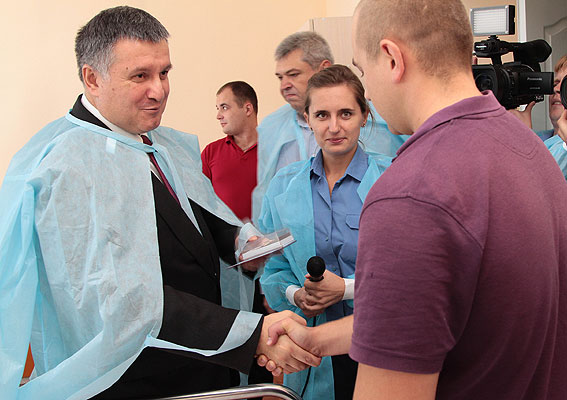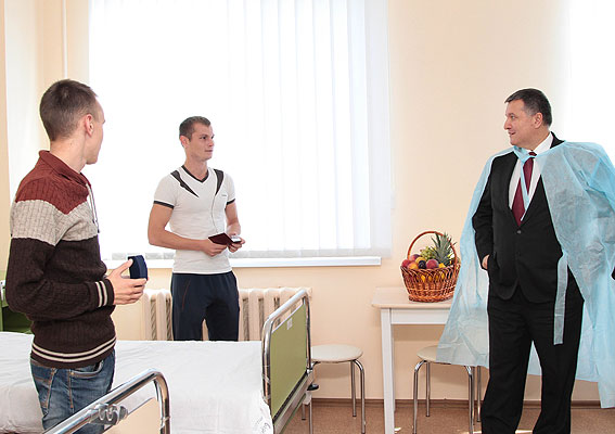 Сьогодні міністр внутрішніх справ України Арсен Аваков провідав у лікарні міліціонерів з Черкащини, які 31 серпня отримали поранення біля стін Верховної Ради України.