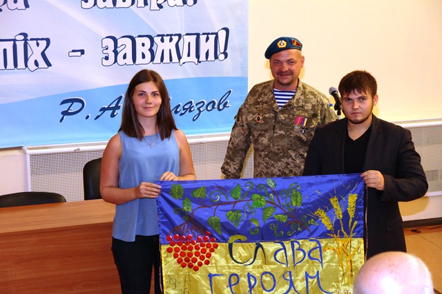 Наприкінці заходу Сергій Очеретній подарував студентам розмальований дітьми синьо-жовтий стяг, який був для нього і його побратимів оберегом у найгарячіших точках АТО. Тепер цей прапор зберігатиметься в музеї університету і нагадуватиме відвідувачам про мужність і героїзм захисників нашої Батьківщини, зазначають у прес-службі вишу.