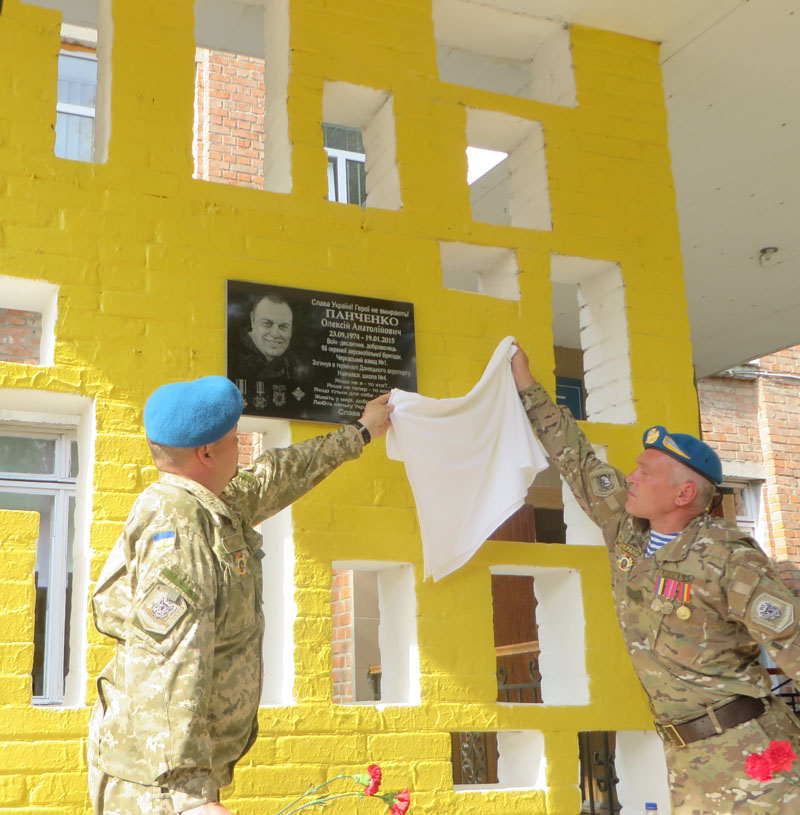 Сьогодні в черкаській загальноосвітній школі І-ІІІ ступенів №4 відбулося урочисте відкриття меморіальної дошки колишньому учневі та випускнику школи 1991 року, бійцю 95-ї аеромобільної бригади 90-го окремого аеромобільного батальйону Олексію Панченку.