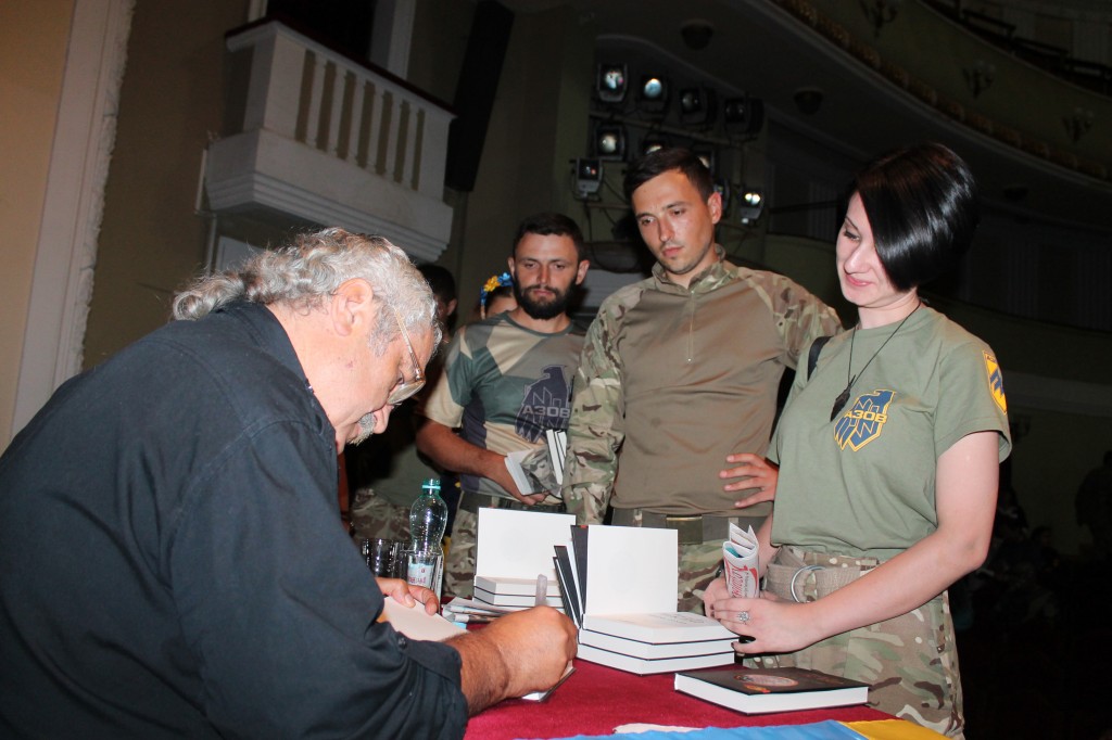Далі була затяжна автограф-сесія, коли до зали зазирали навіть цивільні маріупольці. Старенька бабуся, попросивши у бійців книгу і підійшовши до письменника за автографом, розчулено мовила: «Спасібо вам, роднєнькіє! А кнігу подпішітє для Валєнтіни Пєтровни». Говорила у даному разі на «південному діалекті української мови», за веселим визначенням «Маляра» у книзі та його прототипа «Художника» у реальному житті. Забравши книгу, бабуся раптом урочисто проголосила: «А ето – Вам!» і поклала на стіл письменникові… цукерку. Не було ні схожим на рекламу продукції фабрик сучасного президента, ні на «піар-акцію» президента колишнього на параді у Москві – цукерка була дещо наївним, проте щирим проявом вдячності письменникові за те, що він «підсолодив» життя прифронтового міста.