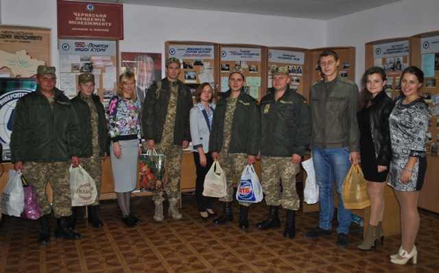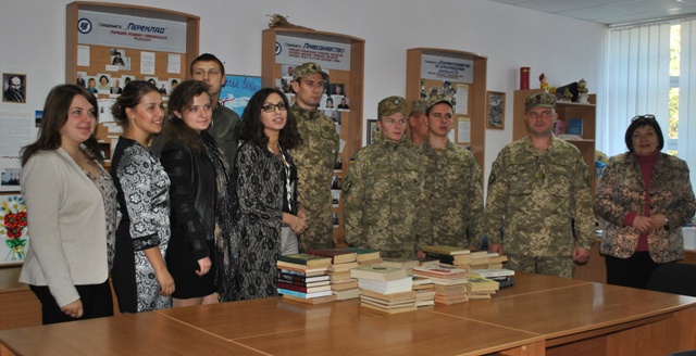 Студенти й викладачі Східноєвропейського університету зібрали книги для бійців Черкаського окремого автомобільного батальйону з підвозу пального, які завітали до вишу 2 жовтня.