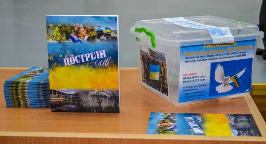 На презентацію довгоочікуваної книги в актовій залі університету зібралися письменники Уманщини, бібліотечні працівники міста, учасники АТО, викладачі та студенти. Місце проведення заходу було обрано організаторами невипадково, адже чимало авторів – це студенти, викладачі, випускники університету. Серед них – завідувач кафедри суспільних дисциплін університету, професор Анатолій Карасевич, викладач кафедри української літератури й українознавства, керівник літературного об'єднання імені Миколи Бажана, доцент Марина Павленко; студенти факультету української філології Євген Романчук, Анна Середа, Тетяна Жвава, студент природничо-географічного факультету В'ячеслав Яременко; випускники університету різних років Анастасія Подбітова-Яніна, Софія Кримовська, Оксана Лущевська, Олександр Шаболдов, Сніжана Шутко.
