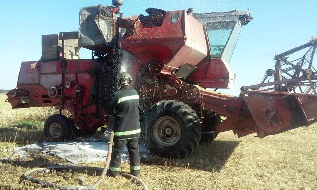 У Жашкові на розпайованій земельній ділянці 10 жовтня о 12.15 під час руху сталося загорання в моторному відсіку зернового комбайна СК-5 «Нива».