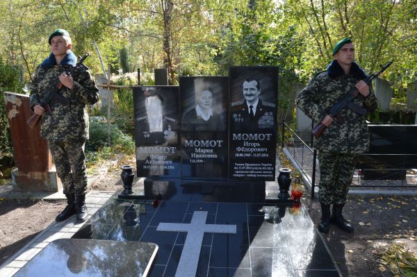 12 жовтня на кладовищі №2 м.Черкаси відбулося урочисте відкриття надмогильного пам’ятника генерал-майору Ігорю Момоту. У заході взяли участь перший заступник голови обласної ради Наталія Кравцова, заступник голови-керівник апарату облдержадміністрації Віталій Коваль, родичі та близькі загиблого, керівництво та персонал Навчального центру прикордонників, яким в свій час керував Ігор Момот, духовенство.