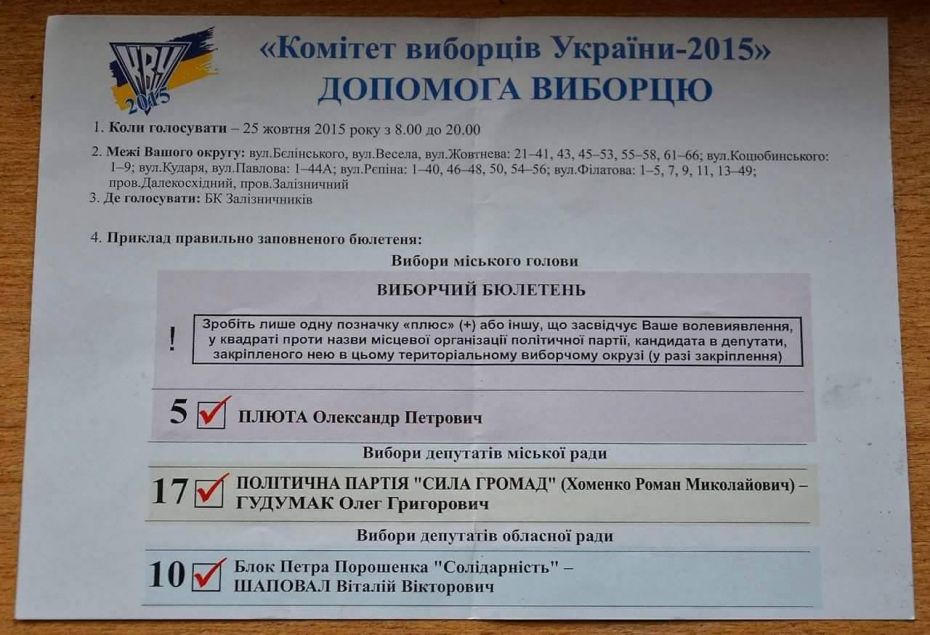 Одним із проявів цього вже радиційно стало використання назви Комітету виборців України в недобросовісній агітації. Подібні випадки вже мали місце під час виборчої кампанії 2015 року в Чернігові, Харкові, Дніпропетровську. Сьогодні такий випадок зафіксований в м. Сміла.