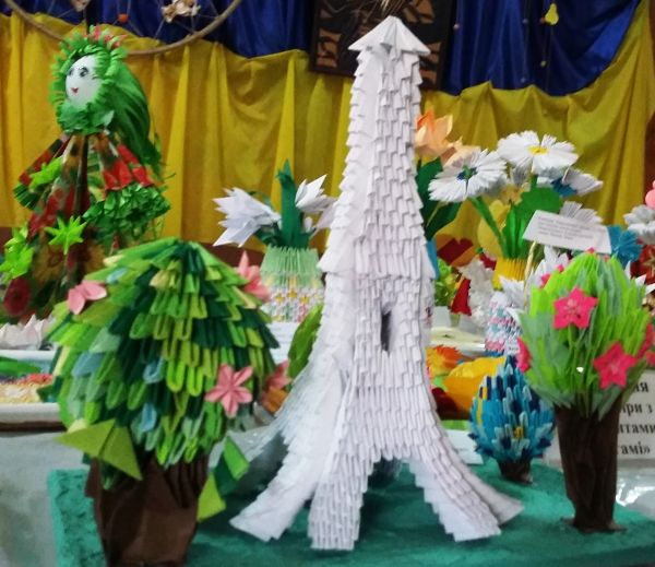 Роботи Побережної Катерини, Томіленко Тетяни, Монько Софії, Сліпко Олександри, Коробко-Короткої Яни, Івашиної Діани, Галич Дар'ї, Темченко Яни, Ємець Валерії та Томіленко Маргарити презентують місто Черкаси на щорічній обласній виставці-конкурсі «Мистецтво оригамі».