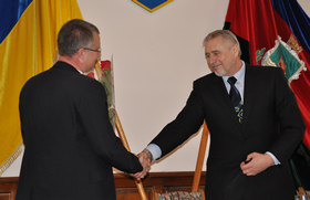 Голова лічильної комісії Володимир Лосіцький, голова райдержадміністрації Олександр Лісовий та весь депутатський корпус привітали Валерія Петровича з обранням його на посаду голови Золотоніської районної ради.