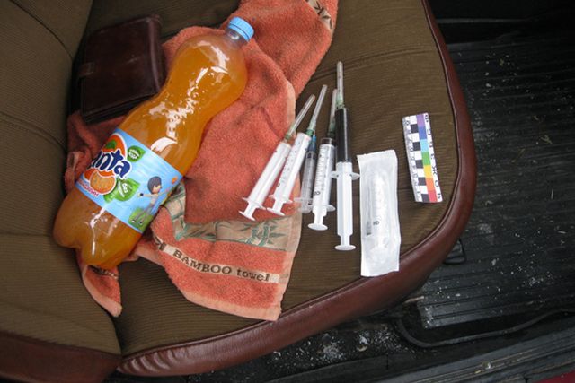 При огляді даного транспортного засобу було виявлено та вилучено два одноразових шприці заповнені рідиною темно-бурого кольору. Вміст даних шприців, за зовнішніми ознаками нагадував наркотичний засіб – ацетильований опій. Вилучені речі направлено для проведення відповідного дослідження. 29 та 36-річні уманчани розповіли, що дану речовину щойно знайшли та залишили для власних потреб.