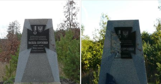 - Нарешті відновили пам’ятний знак присвячений Василю Сергієнку. Таблицю що була до цього, розстріляли ще в жовтні невідомі вандали. Хочу подякувати Сергію Моргунову, який безкоштовно наніс зображення, благодійній ініціативі "Героїка" за матеріал для таблиці, та підприємству Олексія Альбіна за працю над пам’ятником без прибутку. Для покриття 650 грн., що були затрачені мною на відновлення пам’ятника звернусь до побратимів з Самооборони Майдану та небайдужих громадян, що одразу запропонували допомогу у відновленні монументу. Слава загиблим Героям!, - зазначає активіст.