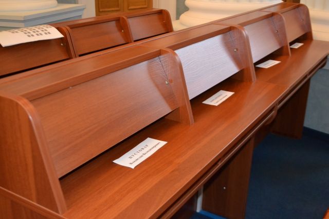 Робоче місце попереднього голови облради Валентини Коваленко – у першому ряду ліворуч від трибуни, поруч з однофальмільцем Олександром Коваленком.