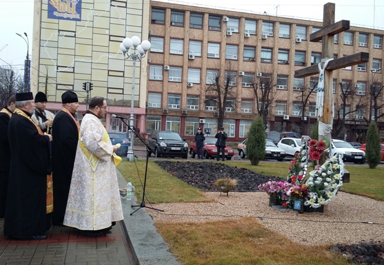 Потім представники влади та всі присутні поклали квіти до меморіального стенду з фотографіями героїв Майдану. Після цього відправились до Свято-Троїцького кафедрального собору, аби поставити свічки у пам'ять загиблим.