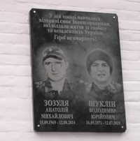 На фасаді Звенигородської спеціалізованої школи № 3 днями урочисто відкрили меморіальну дошку на честь випускників навчального закладу Анатолія Зозулі та Володимира Шукліна.