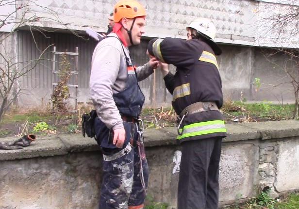 Вже через сім хвилин після повідомлення, встановивши коло будинку висувну автодрабину, до потерпілого піднялися рятувальники 1-ї Державної пожежно-рятувальної частини. Фахівці ДСНС розплутали та звільнили мотузку, яка страхувала 36-річного чоловіка. Після звільнення альпініст самостійно спустився на землю, де рятувальники надали йому першу долікарську допомогу.