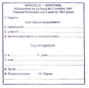 До заяви про проставлення апостиля додається оригінал документа, на якому необхідно проставити апостиль, документ про оплату послуги з проставлення апостиля або документ, що підтверджує право на звільнення від оплати, чи його засвідчена в установленому порядку копія.