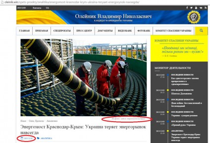 Цікаво, що новину за 3 грудня 2015 року “Энергомост Краснодар-Крым: Украина теряет энергорынок навсегда” сайт екс-регіонала проілюстрував, як виявилось, несправжнім фото. Хоча під ним поставили підпис, ніби це “кабель энергомоста на Крым”.