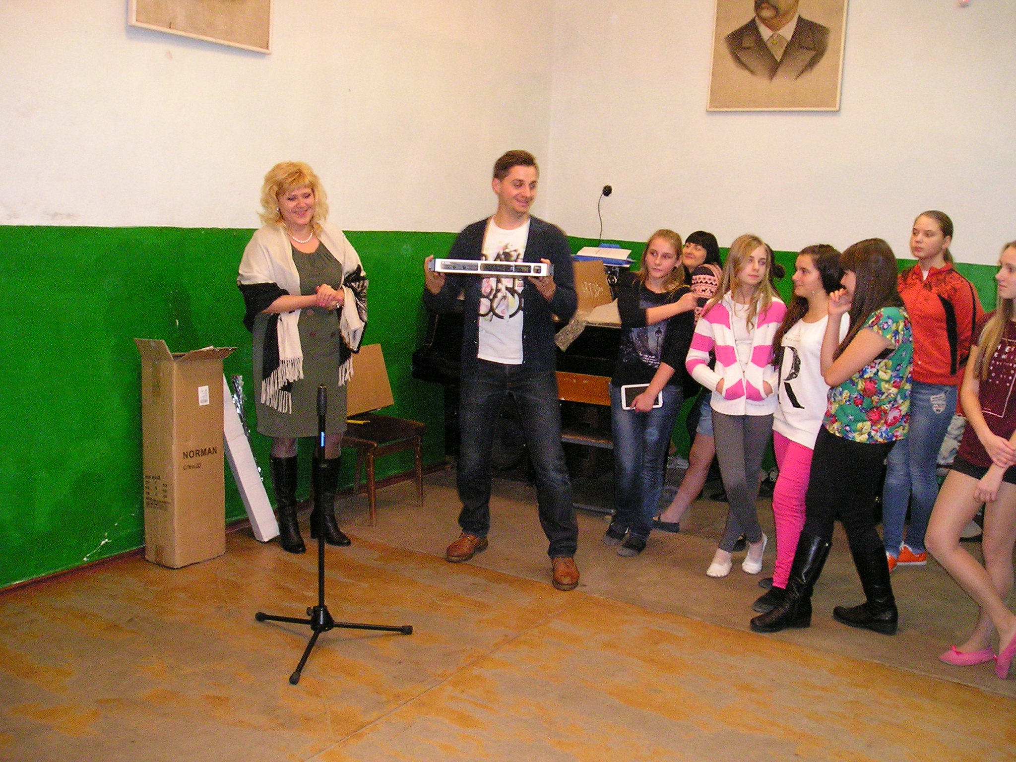 - У нас дуже дійсно талановиті діти - вони постійно беруть участь і отримують перемоги у конкурсах та фестивалях міжнародного рівня, - констатує Людмила Головатюк. – Подароване нам сьогодні обладнання найбільше буде використовуватись у класі сольного співу, на базі якого діє зразковий ансамбль «Квітограй» - і саме він цими днями здобув чергову перемогу - на 12 Міжнародному фестивалі «Світ талантів-2015».