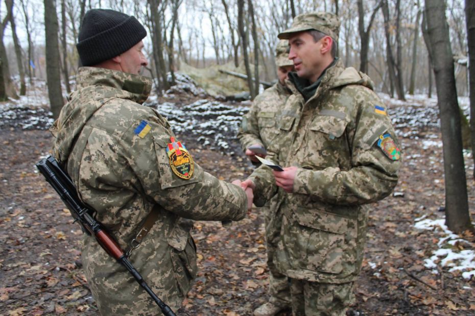 Від громади голова Черкаської ОДА вручив танкістам відзнаки. Такі ж отримали й військові зі Спільного центру з контролю та координації питань припинення вогню та стабілізації лінії розмежування сторін. Тут теж працюють декілька черкащан. Серед них – міський військовий комісар Євгеній Корж.