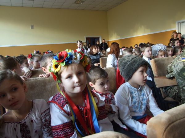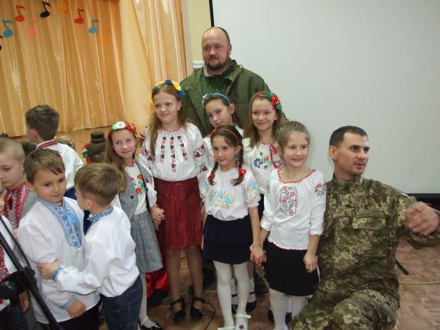 Дітки підготували концерт до свята Козацької пісні і присвячуують його нашим захисникам. Наші кремезні й мужні бійці просто танули на очах, були на стільки спантеличені неочікуваною зміною подій і під час наданого їм вступного слова, окрім привітань і подяк, сказали, що виступати перед такими маленькими дітками, виявляється, страшніше ніж у бою з ворогом.