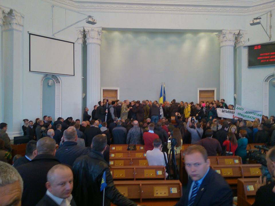 Наразі депутати з малої сесійної зали піднялися у велику і знову пробують розпочати роботу, та громадськість знову займає трибуну.