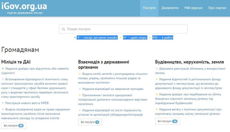 Для того, щоб скористатися електронними послугами online, потрібно зайти на інтернет-сайт igov.org.ua та обрати необхідну послугу для оформлення.