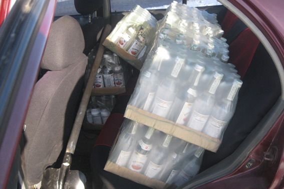 При спілкуванні з водіями, правоохоронці помітили, що в салоні автомобілів знаходиться велика кількість заповнених скляних пляшок. На місце події було викликано слідчо-оперативну групу відділу. При поверхневому огляді автівок працівники поліції виявили близько 540 літрів прозорої рідини з різким запахом спирту. 29-річний та 34-річний жителі Кіровоградської області документів на підакцизний товар не надали.