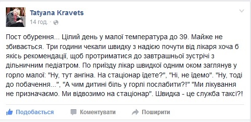 Повідомлення з соцмереж щодо роботи Швидкої допомоги:
