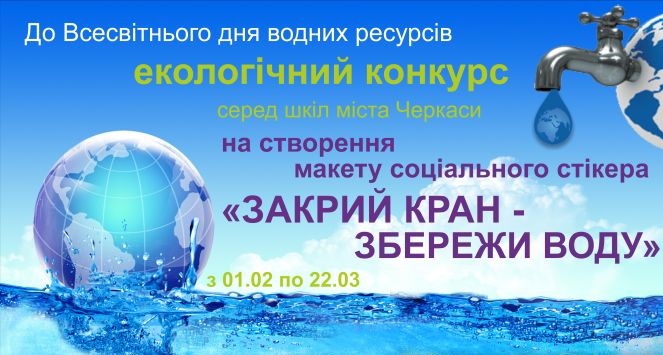 1-го лютого стартує незвичайний екологічний конкурс серед загальноосвітніх шкіл міста Черкаси, який направлений на виховання раціонального водокористування та бережливого ставлення до природних ресурсів планети.