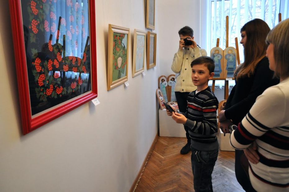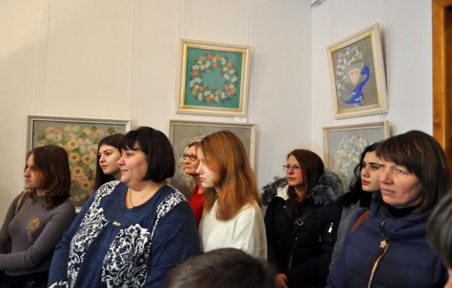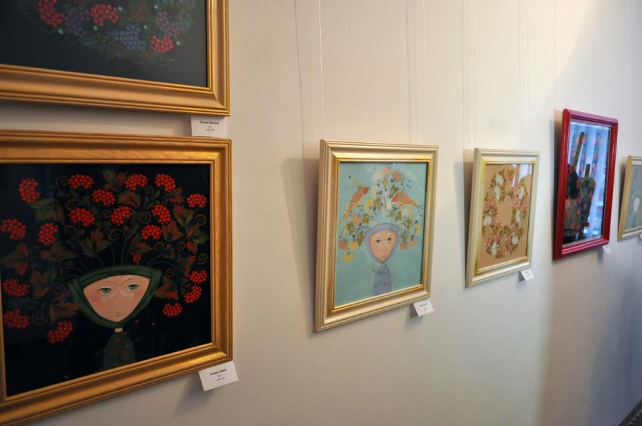 На виставці представлено більше 40 творів художниці: серія декоративних розписів та серія зображень янголів. У розписах майстриня використала деякі прийоми та елементи «петриківки». Але форми мотивів, їх композиційна подача, колорит надзвичайно індивідуальні з притаманними лише їй дивовижною витонченістю, віртуозністю і легкістю малюнка.