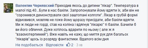 «Надійшла одна скарга- лікар на викликові не роззулась. Товариство! Обов’язок знімати взуття не регламентується жодним нормативним документом. Рівень доходів лікаря такий, що , можливо, соромиться демонструвати заштопані колготи. Будьте взаємотерпимі! Хто опікується чистотою власного помешкання, потурбуйтесь про прихід лікаря, майте запас одноразових бахіл. Це збереже нервові клітини обох сторін. Вдалого всім дня!» – написав Олег Стадник у «Фейсбуці».