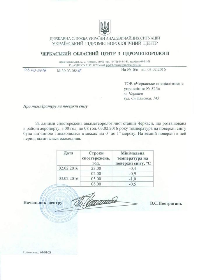 «У разі утворення ожеледиці здійснюємо обробку, відповідно до "правил утримання доріг та вулиць населених пунктів". Як видно з довідки гідрометеоцентру температура поверхні дороги з 23-00 була від’ємна. Але ожеледь почала утворюватись близько 6 ранку. Тому було прийнято рішення здійснити обробку головних магістралей відповідно до регламенту. Рішення про обробку доріг тільки після винекнення ожеледиці при плюсовій температурі повітря і мінусовій дорожного покриття прийняте з метою економії бюджетних коштів», – роз’яснив підприємець.