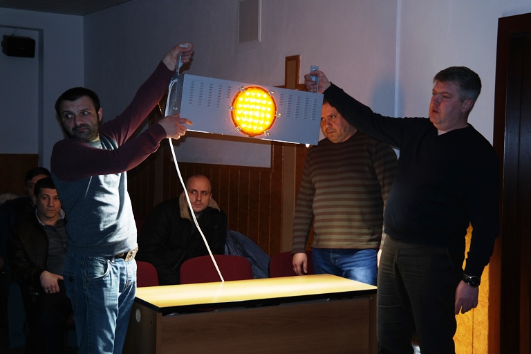 – У нас розроблено чотири моделі такого прожектору, які відрізняються потужністю, а також тим, чи є на ньому світлофор, – розповів керівник проектів компанії «Інтер-Ліга» Юрій Онопрієнко, яка розробляла ці світильники. – Найбільш потужний – 130 Вт, призначений для широких вулиць. У цього приладу декілька функцій та завдань. Він призначений не лише для того, аби освітлювати дорогу, а й дає жовтий сигнал світлофору. Коли ми вперше розмістили такий світильник на переході, спостерігали, як автомобілі гальмували, наближаючись до цієї ділянки дороги.