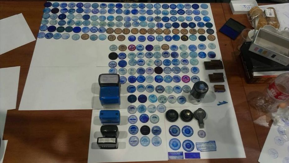 Обшук проводився по кримінальному провадженню, відкритому за фактом привласнення державних коштів службовими особами комунального підприємства, яке розслідується слідчими слідчого управління Нацполіції в Черкаській області. Під час обшуку в одному з приміщень підприємства, яке, за твердженням керівництва, здавалось в оренду, оперативники управління захисту економіки виявили стоси установчих документів на різні ТОВ та ПП з різними напрямками діяльності, копії паспортних даних громадян та 227 печаток, серед яких: печатки Міністерства внутрішніх справ України, Головного управління юстиції в м. Києві, реєстраційної служби Головного управління юстиції у м. Києві, Державної податкової інспекції м. Черкаси, печатка гербова паспорта України, печатка філії комерційного банку, печатки приватних нотаріусів, органів самоорганізації населення, громадських організацій, страхових компаній та кліше з підписами.