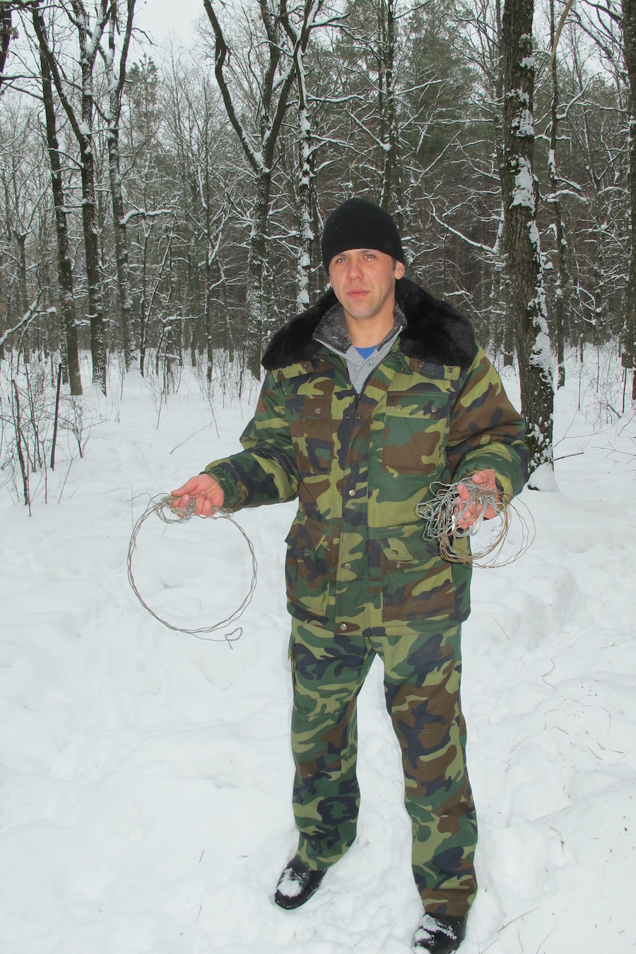 Більше десятка браконьєрських петель демонструє мисливствознавець Канівського лісгоспу Сергій Лисак. Він їх знайшов, коли поповнював продовольчі запаси годівниць на території мисливського господарства «Рось». Підступні пастки виявив на звіриних стежках, що мешканці лісу «проклали» до місць підгодівлі.