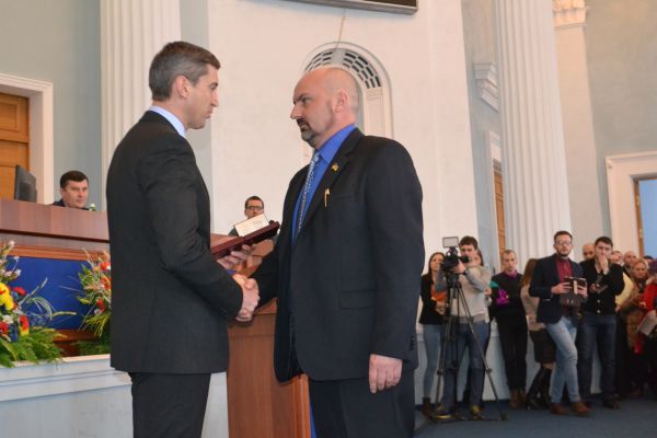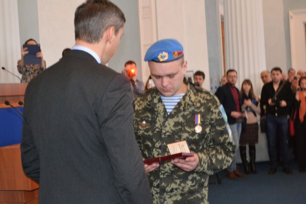 — Сьогодні черкащани беруть активну участь у проведенні антитерористичної операції на Сході країни, проявляючи при цьому особисту мужність, патріотизм і вірність присязі, — при врученні нагород зауважив голова облради Олександр Вельбівець.