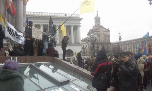 Ну, якщо коротко, - кажу, - то ситуація на данний момент виглядить слєдующим образом. Весь абсолютно народ вийшов на Майдан і занімається погромами, вандалізмом та битовим мародьорством. І помімо того, шо требує от властєй отстранить от власті всі власті, ще хоче получить назад права матюкаться руським язиком…" - пише Чепинога.