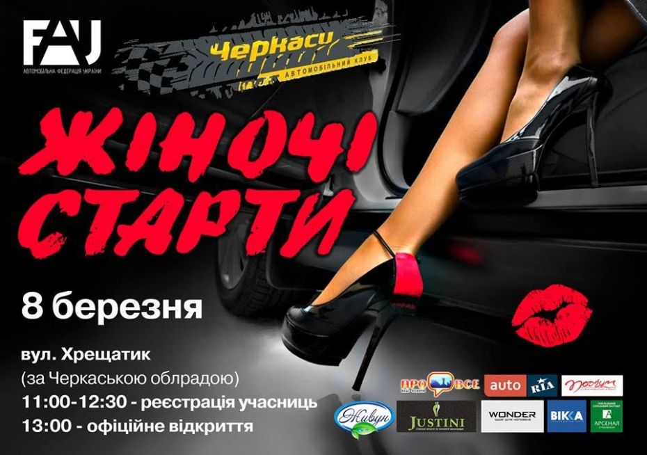 8 березня у Черкасах пройдуть унікальні змагання виключно для жінок – «Жіночні старти». Учасником «Жіночих стартів» може стати кожна черкащанка, яка вміє водити авто, має водійське посвідчення та залізного коня. Веселий настрій, море вражень та нагороди – гарантовані.