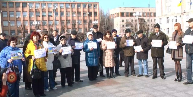Небайдужі громадяни з прапорами і транспарантами більше години стояли на Соборній площі.