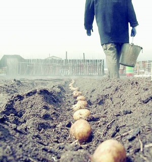 Перебирає заготовлені під посадку картоплини, відкидає уражену хворобами. Обрізає ушкодження й присипає зрізи деревним попелом.